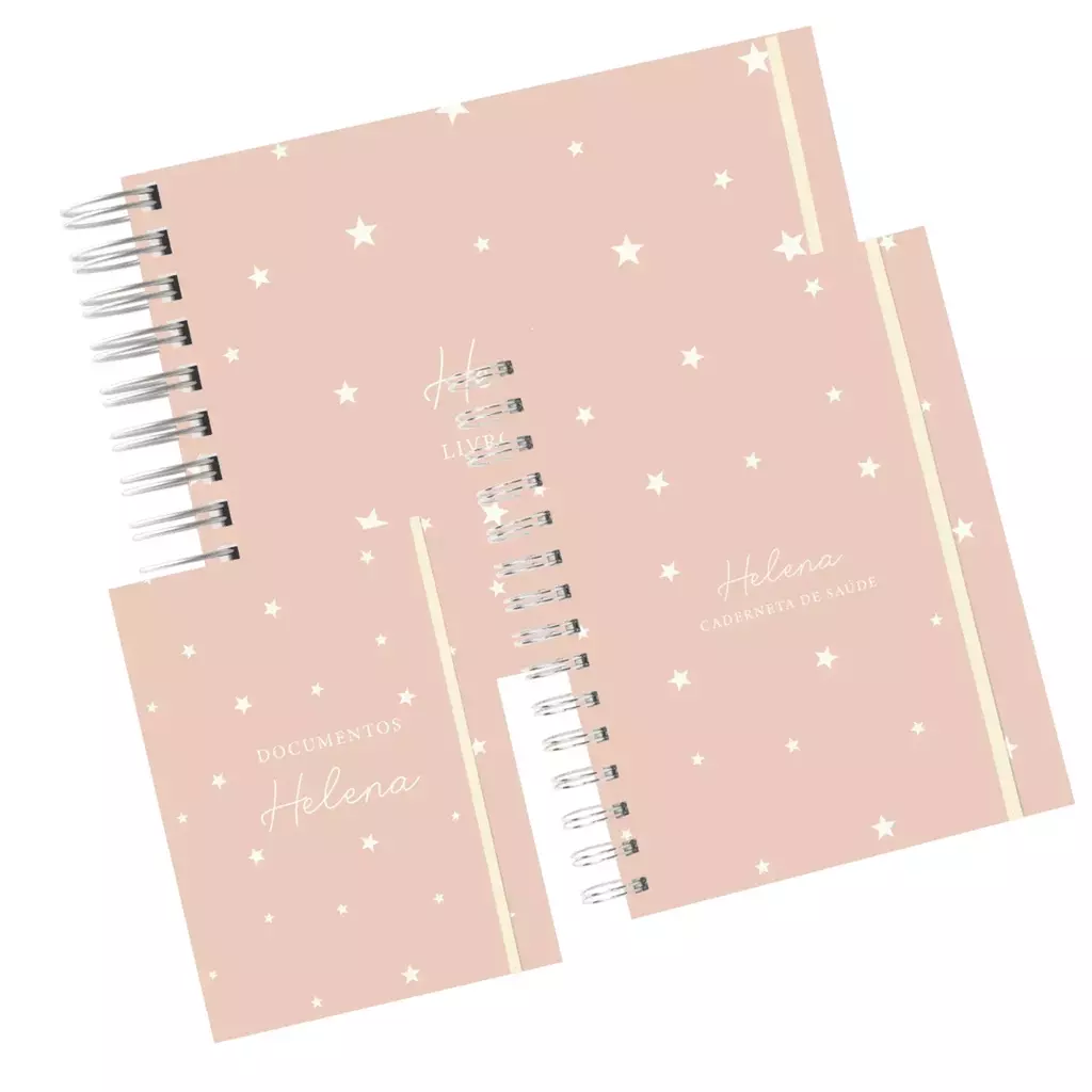 Combo Laços de Amor - Livro do Bebê + Caderneta de Saúde + Porta documentos - Star rose