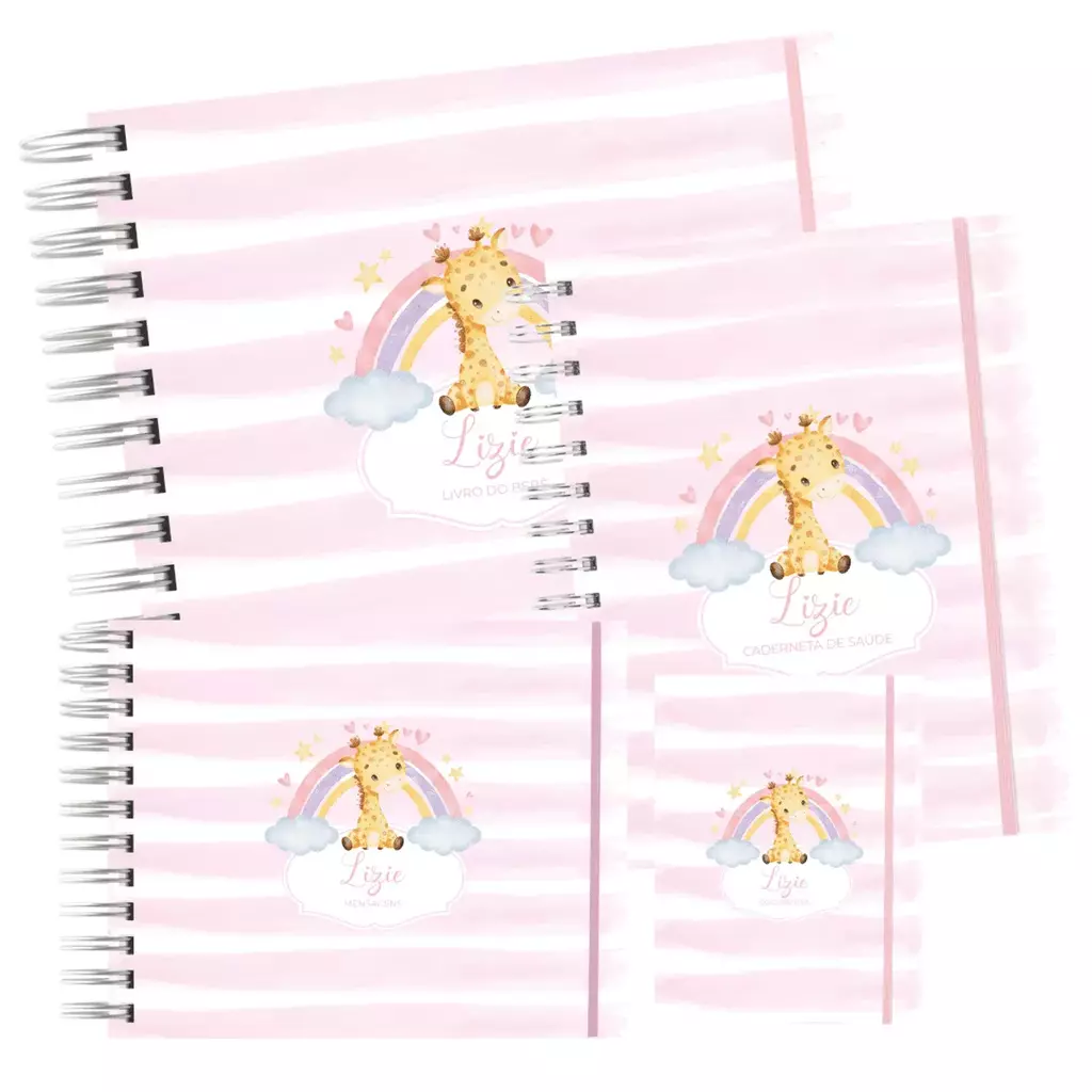 Combo Sonhos - Livro do Bebê + Caderneta de Saúde + Porta documentos + Caderno de Mensagens - Girafa menina